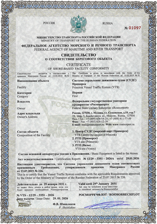 Свидетельство системы управления движением судов Петропавловск-Камчатский первой категории