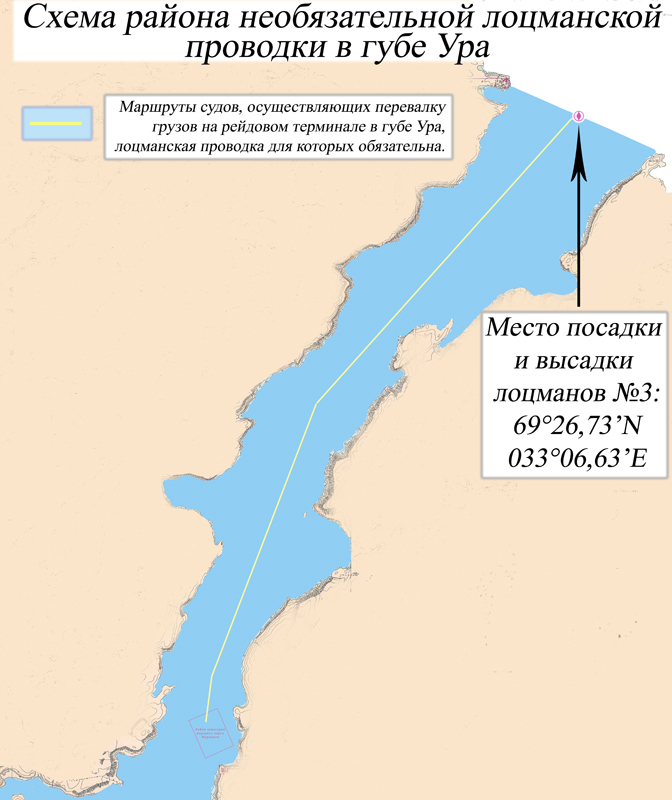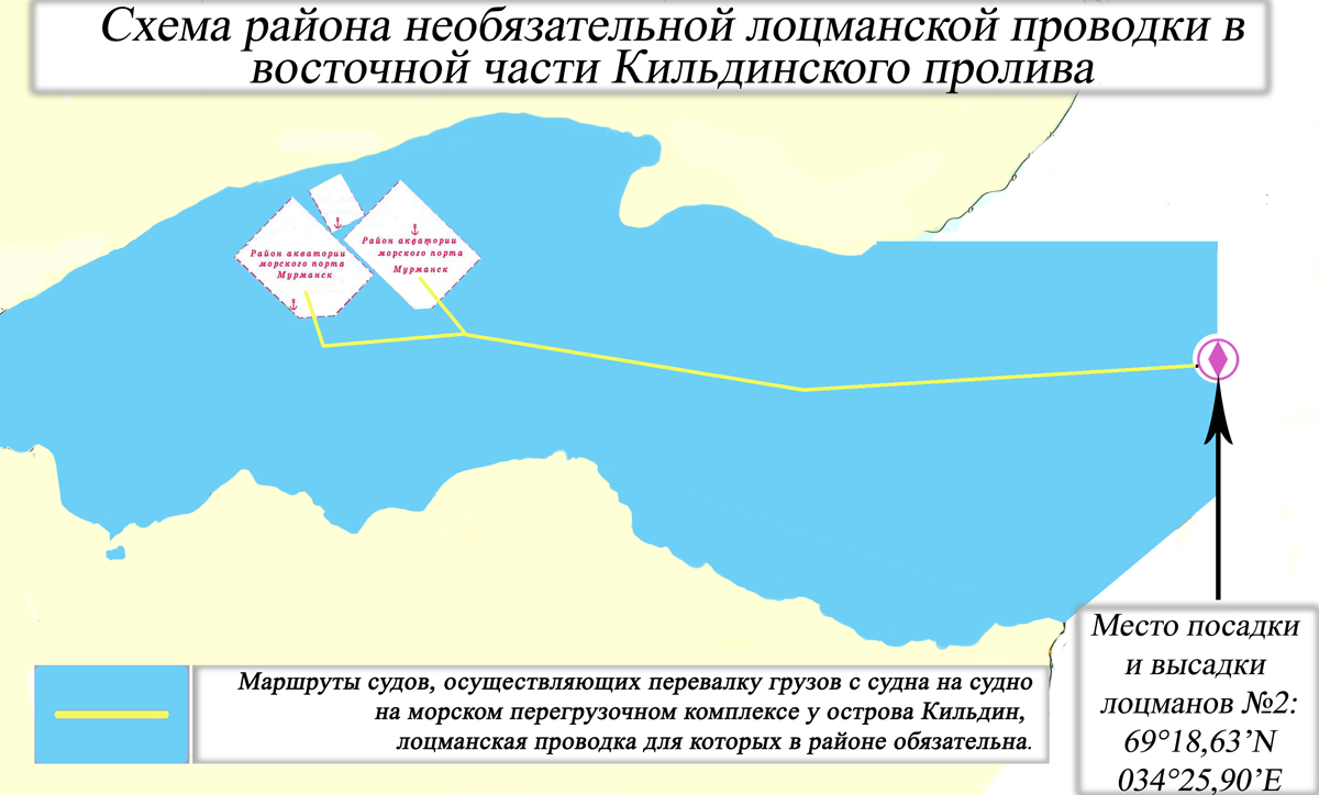 Прием/высадка лоцмана на/с судно, следующее в/из морской порт Кандалакша, осуществляется: