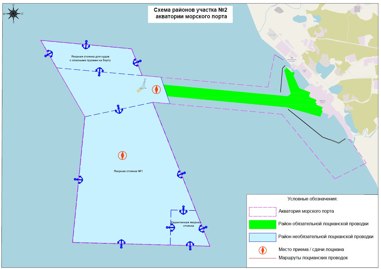 - в районе между причалами и якорными стоянками в морском порту Архангельск. Маршруты лоцманских проводок и их протяженность прилагаются.