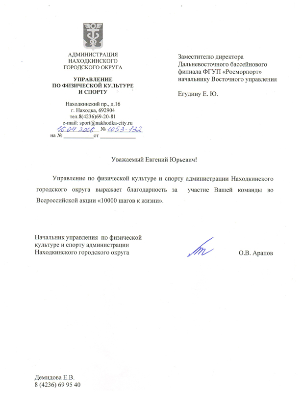 По итогам мероприятия Управлением по физической культуре и спорту администрации Находкинского городского округа команде Восточного управления Дальневосточного бассейнового филиала ФГУП «Росморпорт» объявлена благодарность.