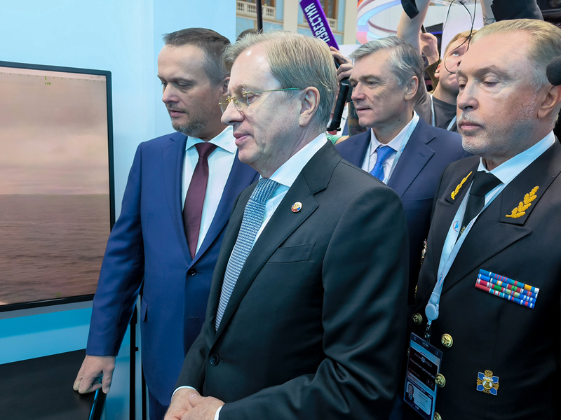 Заместитель Председателя Правительства России Виталий Савельев и Министр транспорта Андрей Никитин оценили работу автономного экосудна «Копорье»