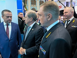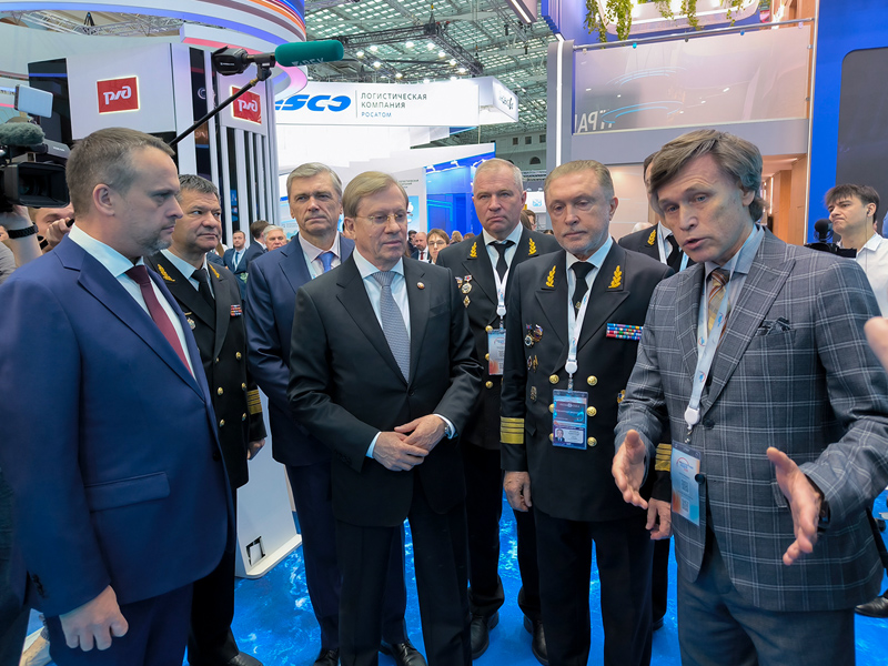 На XIX Международном форуме и выставке «Транспорт России» Заместитель Председателя Правительства России Виталий Савельев и Министр транспорта России Андрей Никитин ознакомились с работой автономного сборщика льяльных вод ФГУП «Росморпорт».