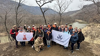 Работники Восточного управления Дальневосточного бассейнового филиала водрузили флаг Победы над ущельем Дарданеллы