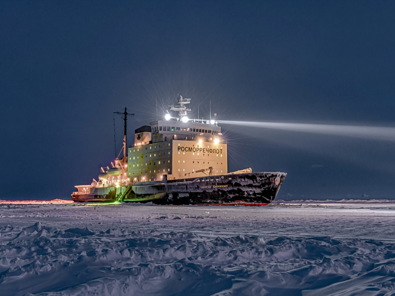 Оказание ледоколом «Красин» услуг по ледокольной проводке судов в Карском море.