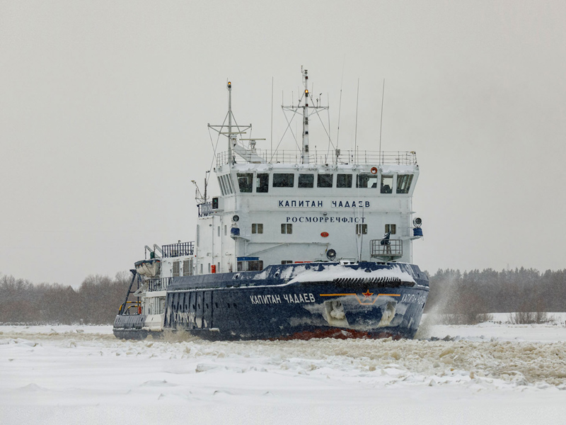 Ледокольное обеспечение судоходства на внутренних водных путях Российской Федерации с использованием ледоколов «Капитан Зарубин» (Северо-Западный бассейновый филиал) и «Капитан Чечкин» (Астраханский филиал).