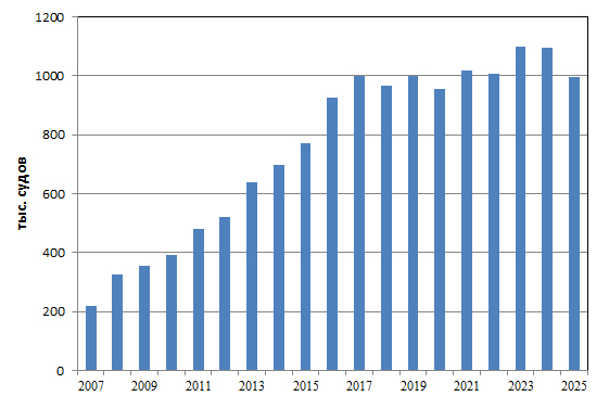 | Год | Количество судов, находившихся в зоне действия СУДС предприятия, тыс. ед. |
