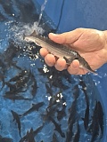 Было выпущено более 8,7 тыс. штук молоди средней навеской 16 грамм, выращенной на специализированном рыбоводческом заводе.