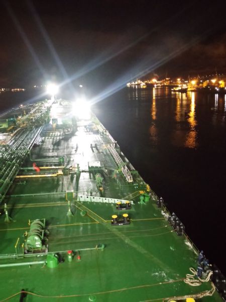 Длительность всех операций по лоцманской проводке танкера-накопителя и его последующего раскрепления на якорно-швартовных связях составила почти сутки.