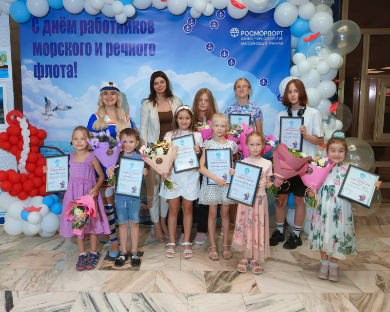 Директор Азово-Черноморского бассейнового филиала ФГУП «Росморпорт» Анна Фоменко 8 июля 2022 г. вручила почетные грамоты и поздравительные букеты победителям конкурса детских рисунков, посвященного празднованию Дня работников морского и речного флота, который проводился среди детей работников филиала.