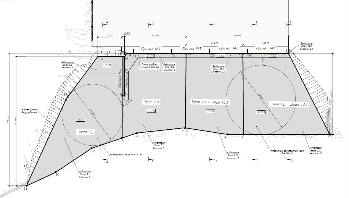 - дноуглубительные работы на операционных акваториях причалов № 3 и № 4 приостановлены в соответствии с результатами промерных работ на этом участке.
