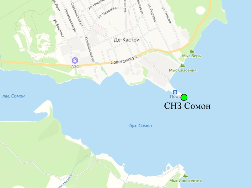 – светящий навигационный знак пирса бухты Сомон, расположенный в бухте Сомон залива Чихачева, в морском порту Де-Кастри;