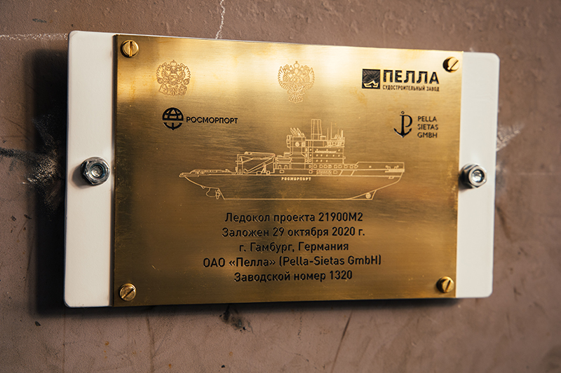 Закладка нового ледокола по заказу ФГУП «Росморпорт» мощностью 18 МВт ледового класса Icebreaker7 состоялась на верфи судостроительного завода «Пелла». ФГУП «Росморпорт» в сентябре 2019 года заключил с ОАО «Пелла» контракт на строительство нового судна. Линейный дизель-электрический ледокол проекта 21900М2 будет построен в рамках Комплексного плана модернизации и расширения магистральной инфраструктуры до 2024 года для обеспечения круглогодичной работы замерзающих морских портов Дальневосточного бассейна.