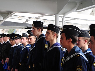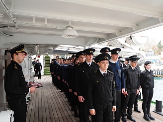 На торжественном построении по случаю окончания 4-й смены плавпрактики командование парусника отметило лучших курсантов, которым капитан вручил памятные сувениры.
