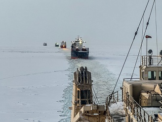 В предыдущем сезоне ледоколы ФГУП «Росморпорт» также работали в акватории Карского моря по договору с ФГУП «Атомфлот». Во время зимне-весенней навигации 2023-2024 годов суда «Красин», «Владивосток», «Адмирал Макаров» и «Виктор Черномырдин» выполнили более 200 ледокольных операций.