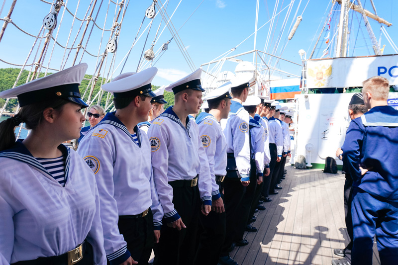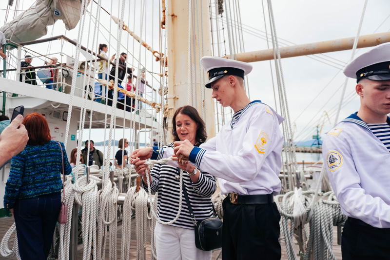 В морском порту Петропавловск-Камчатский парусник 12-13 июля встречал гостей фестиваля «Открытый борт». Судно посетили около 5 тыс. жителей и гостей столицы Камчатки, в том числе Губернатор Камчатского края Владимир Солодов.