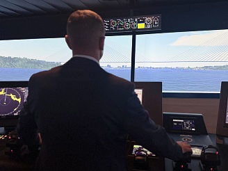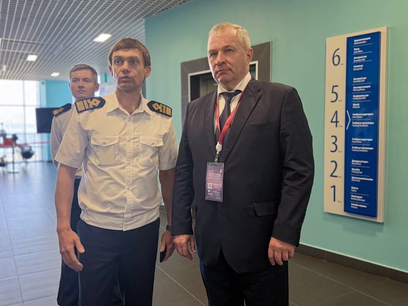 В Дальневосточном морском тренажерном центре Сергей Пылин осмотрел ходовой мостик с круговым обзором 360 градусов, тренажеры грузобалластных операций и бассейновый комплекс аварийно-спасательных операций на море.