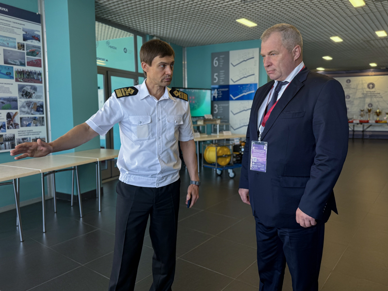 В ходе визита генеральный директор обсудил с ректором вуза Денисом Буровым перспективы перехода на автоматизированное управление подводных и надводных аппаратов, которые выполняют промеры дна, обследуют гидротехнические сооружения и подводные части.