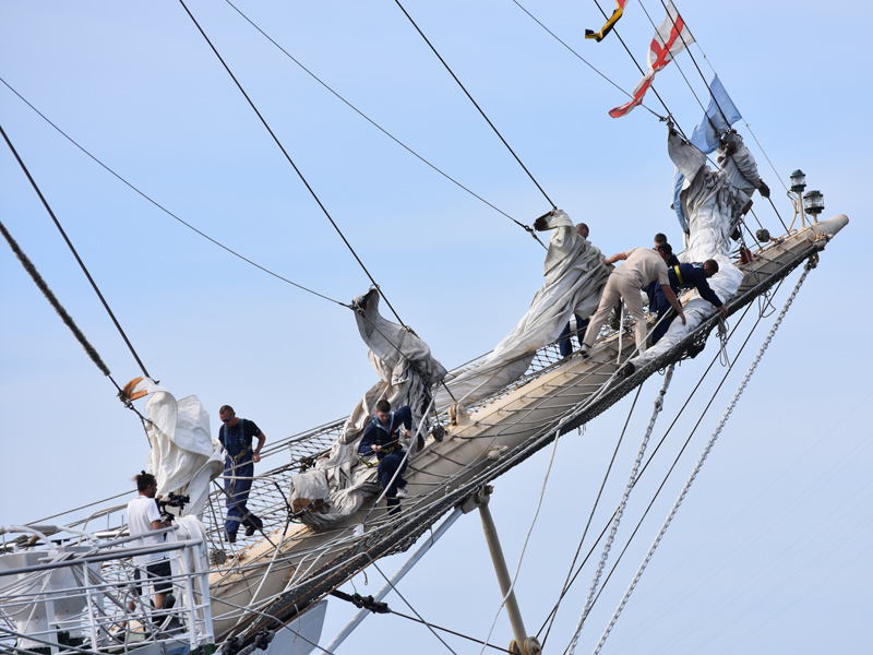 По словам капитана судна Сергея Воробьева, в последний день смены курсанты снимали и убирали на хранение паруса, чтобы в зимний период защитить снаряжение от непогоды и перепадов температуры.