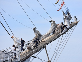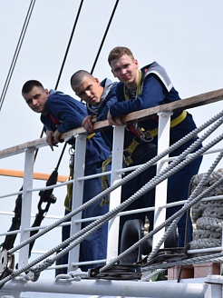 «Эта операция завершила двухмесячную насыщенную практику для 75 курсантов, которые постигали морское дело под руководством 4 наставников и экипажа судна. Ребята несли вахту, работали впередсмотрящими, рулевыми и мотористами, участвовали в парусных авралах. Вместе с тем они посещали теоретические занятия, на которых знакомились с устройством судовых механизмов», – рассказал капитан.