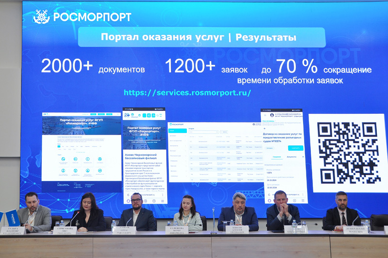 Значительное внимание в докладе уделено развитию Портала оказания услуг. За два года эксплуатации в южных морских портах в электронной форме обработано более 1 200 электронных заявок на оказание услуг и подписано более 2 000 документов. В настоящее время идет опытная эксплуатация модернизированного портала в Северо-Западном и Арктическом бассейновых филиалах.