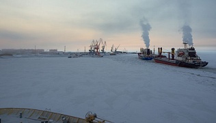 Ледокол «Капитан Драницын» вместе с сухогрузами изменил место стоянки на более безопасное. В порту Певек ледокол обеспечит безопасную стоянку судов до момента улучшения ледовой обстановки.