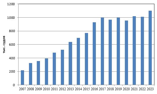 | Год | Количество судов, находившихся в зоне действия СУДС предприятия, тыс. ед. |